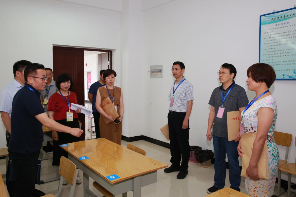 6月9日上午,为期六天的“国家医师资格实践技能考试”在我校召陵校区顺利开考。考试期间省考评专家组领导郭海周、时焕卿、李胜云一行三人,亲临漯河考点现场检查指导工作。市卫计委副主任赵明阳、副校长王福青分别就考务工作和医师资格考试基地建设情况向专家组进行了汇报。